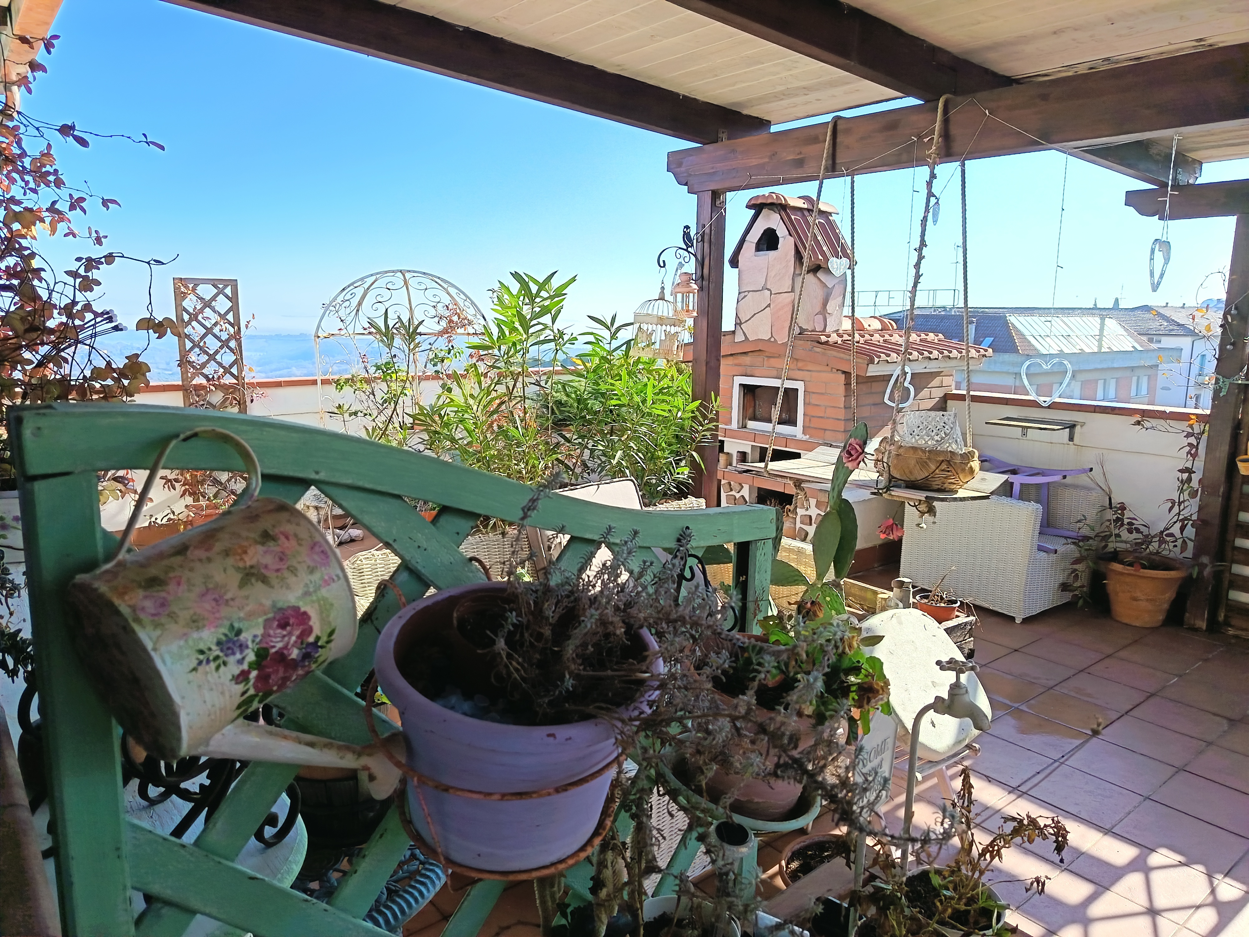 Il vero punto forte di questa proprietà è il terrazzo panoramico, un ampio spazio esterno arredato con limonaia e pergole, dove poter godere di cene al tramonto o semplicemente rilassarsi all’aria aperta. Le due camere da letto e lo studio offrono spazio e privacy, mentre i due bagni garantiscono comfort e funzionalità.