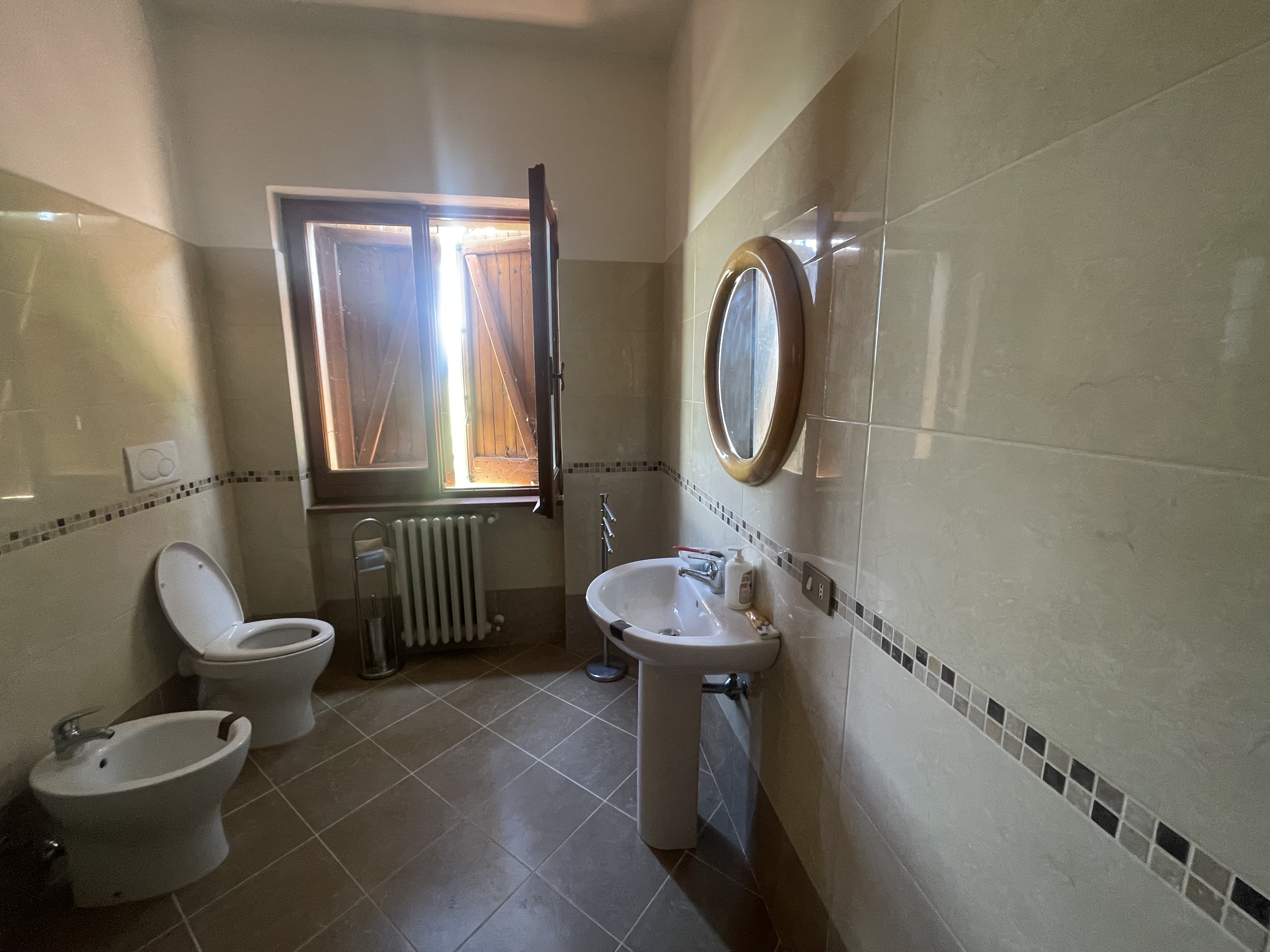 Internamente e’ cosi composta:a piano terra ampio ingresso,salone doppio con camino,cucina abitabile,un ampio e comodo bagno e un locale lavanderia;al piano primo una bellissima stanza luminosa adatta a varie soluzioni (studio/salone oppure camera padronale),tre camere matrimoniali,un bagno con vasca e doccia;al secondo e ultimo piano troviamo altre due camere,un bagno e un ripostiglio.Tutti i bagni sono nuovi.Porte e scale in rovere.Completa la proprieta’ un giardino di circa 1000 mq con prato e alberi di alto fusto dove si puo’ realizzare una piscina.Cancello automatico.Proprieta’ recintata.Possibilita’ di realizzare posti auto esterni.Molto luminosa con vista molto bella sul Castello di Sarteano.Termoautonomo a metano.Doppi vetri.Ideale come abitazione privata e anche da mettere a reddito come casa vacanze.Ape in definizione.rich.590.000 euro tratt.